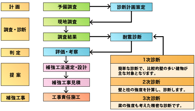 提案の補強詳細設計は2次診断以上とし、1~2ケ月程掛かります。